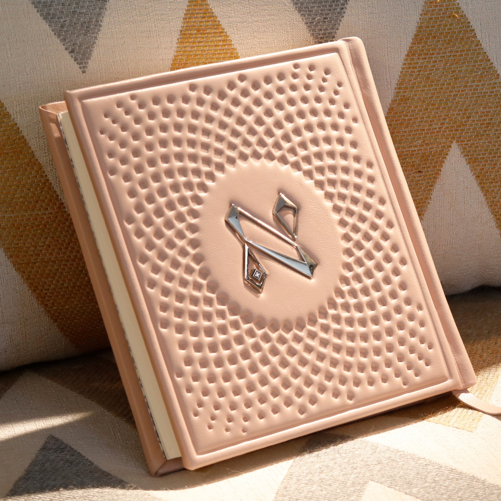 Crafted with natural diamonds set in 14K white gold and bound in luxurious Italian-imported Nappa leather, each book is a masterpiece of spiritual artistry. Printed in Jerusalem and presented in an elegant jewelry box, it embodies dedication and care.
